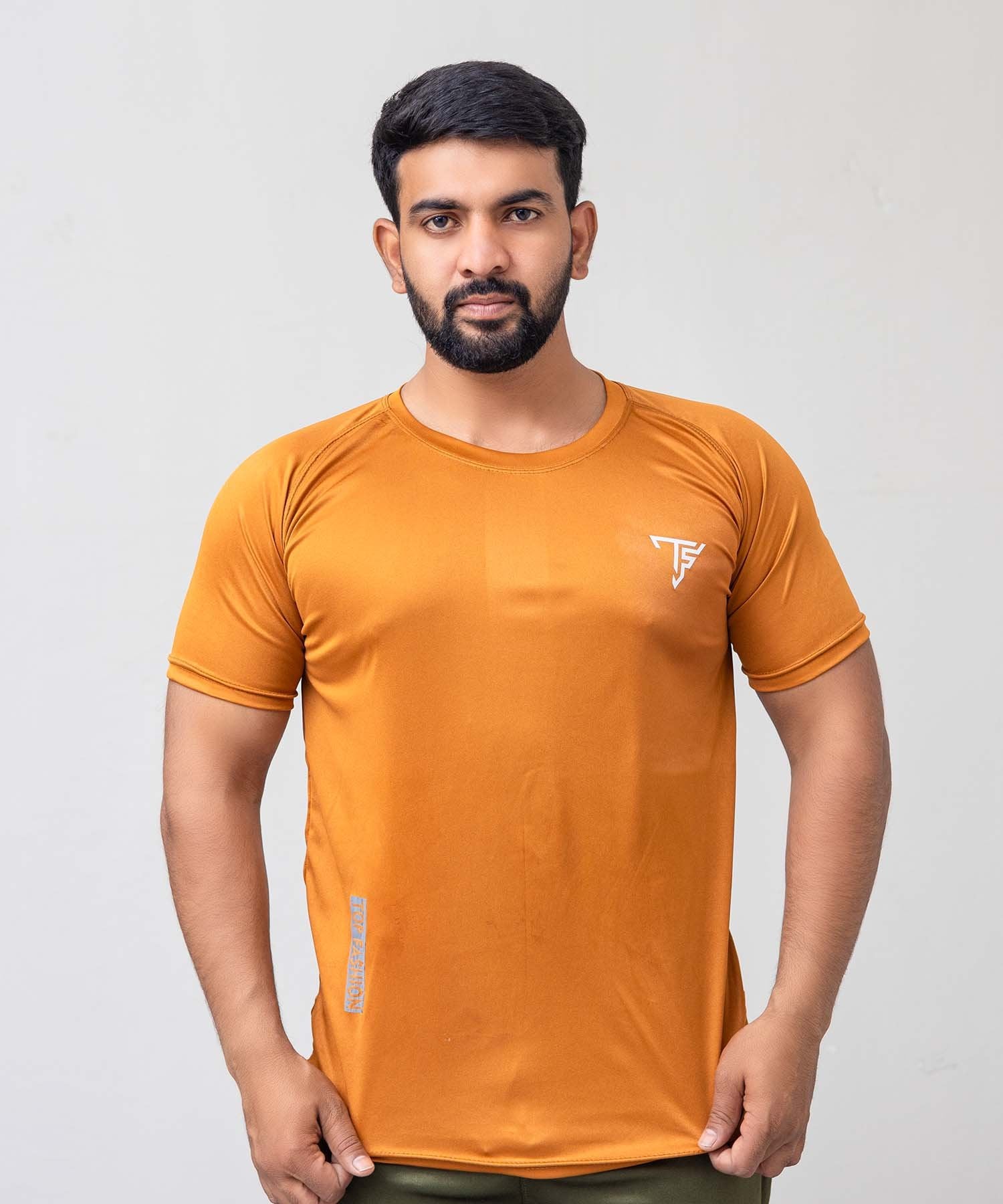 Its athletic fit and stylish mustard shade make it a standout piece for gym, travel, or casual wear. Featuring the TF signature branding, this tee is perfect for those who value both function and fashion.