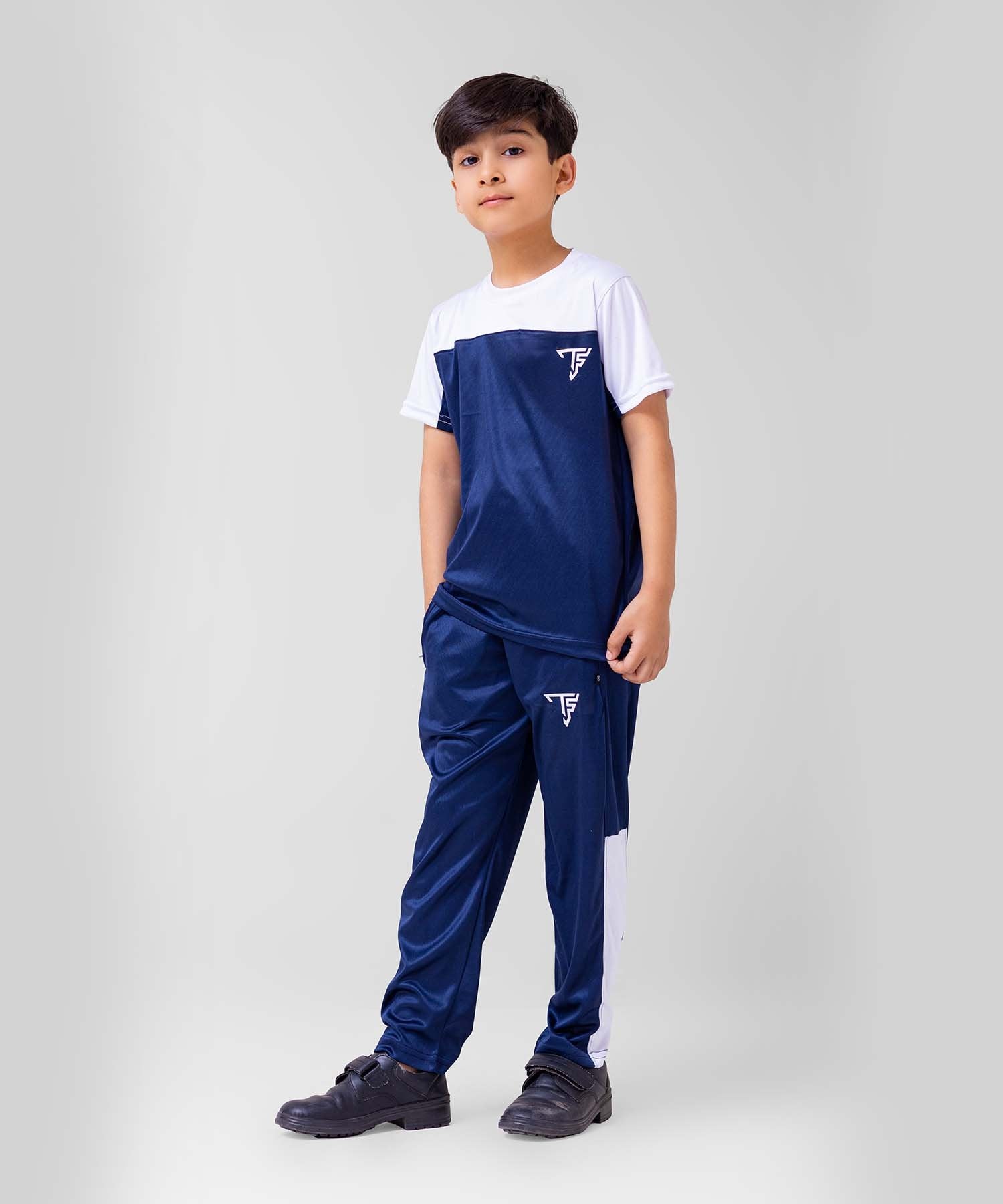 Designed for active kids, this Boys’ Sports Set offers a modern two-tone navy blue and white design, making it perfect for school, sports, and casual outings.
